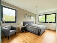 Au 1er étage, l'ensemble des chambres est regroupé dans un espace de plus de 116 m², comprenant 4 chambres avec chacune leur dressing, 2 chambres avec salle d'eau privative et deux chambres partageant une salle d'eau avec douche à l'italienne. La suite parentale de 34 m² comprend une chambre avec un lit King Size, un dressing sur mesure, un espace détente et une salle de bain avec douche à l'italienne, baignoire et WC. Tous les rangements de la maison sont intégrés.