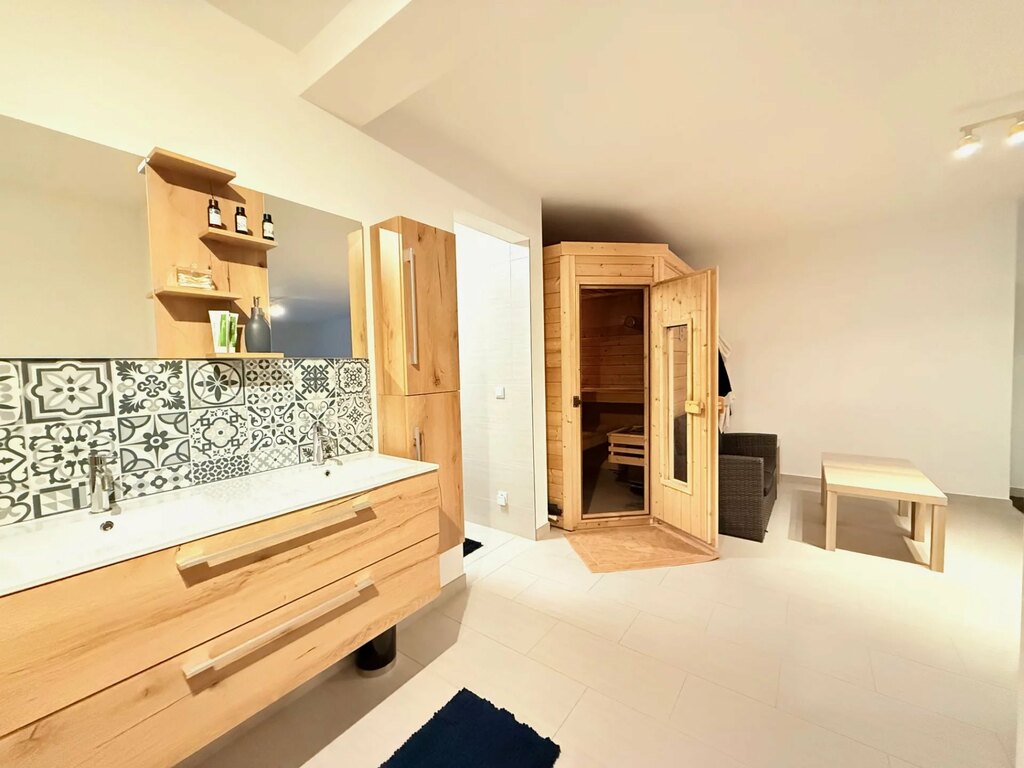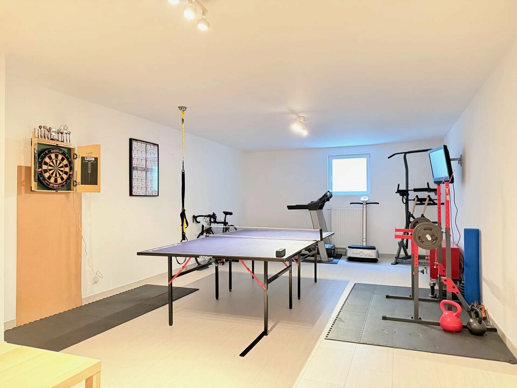 Au sous-sol, des locaux techniques et de service discrets mais complets : une buanderie spacieuse avec deux lave-linge et sèche-linge ; Un local technique, deux grandes caves (dont une cave à vin/stockage et la seconde actuellement utilisée comme chambre d'amis), un WC, ainsi qu'un espace bien-être avec douche et sauna, pouvant accueillir 4 personnes, complété par un espace détente et une salle de sport entièrement équipée : TRX, tapis de course, PowerPlate, rack de musculation, suspension pour barre fixe, prise d'escalade, jeu de fléchettes, table de ping-pong et télévision. Le tout dans un espace unique et intimiste.