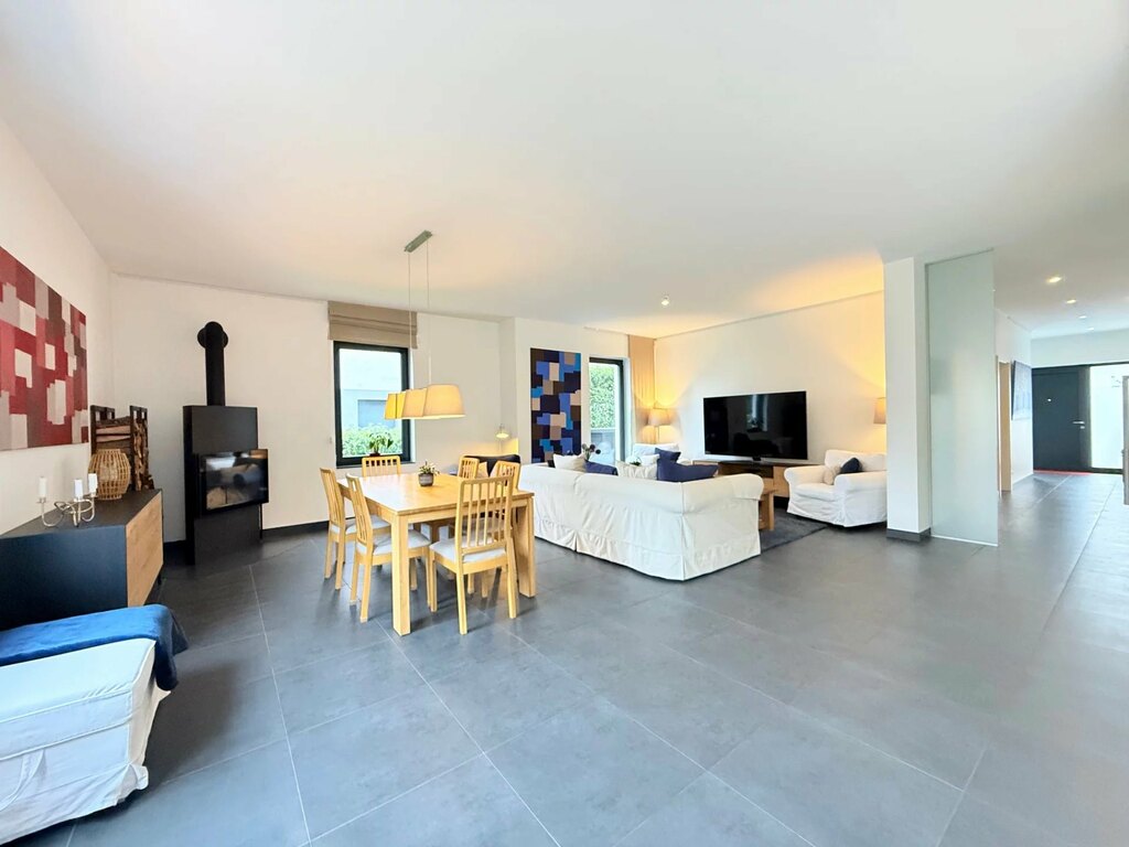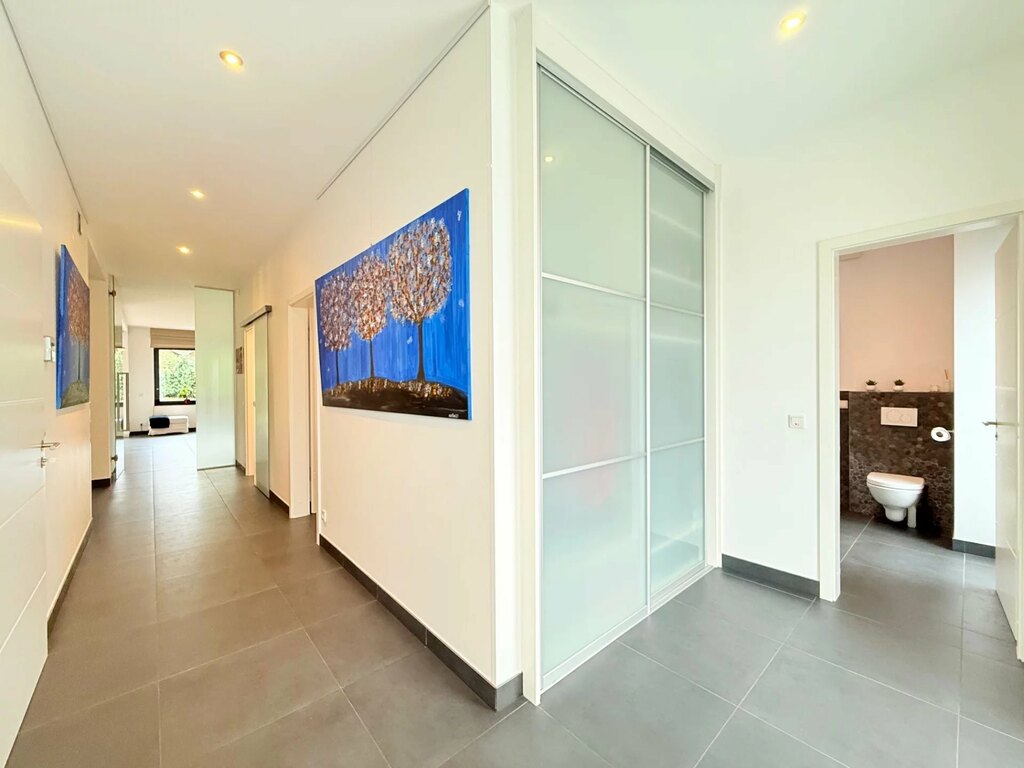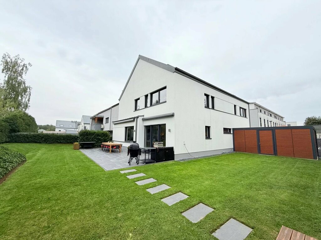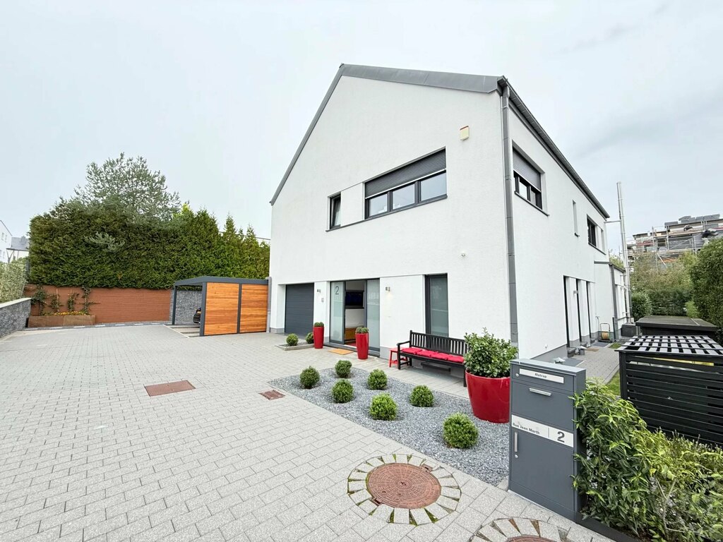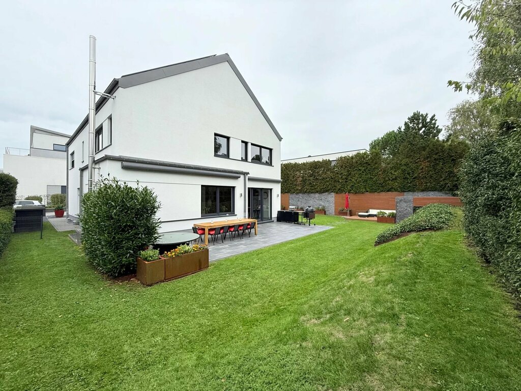 MvD Immobilière vous propose en exclusivité cette rare propriété contemporaine haut de gamme située dans le charmant village de Capellen, sur la commune de Mamer. C'est l'une des communes les plus paisibles de l'ouest du Luxembourg, à seulement 15 minutes du centre-ville. Située dans une impasse très calme, la propriété offre des places de parking pouvant accueillir jusqu'à 4 à 6 voitures sur un terrain ensoleillé de 8,64 ares, exposé ouest. Cette villa développe une superficie totale de près de 485 m², dont 354 m² habitables avec un garage et un abri voiture de 54 m², dans un cadre naturel et discret. Pour les amoureux d'architecture moderne et de belles proportions, cette propriété offre une atmosphère raffinée grâce à ses beaux et généreux espaces. Construite en 2014, la construction a été réalisée avec des matériaux de qualité et un agencement conçu pour allier confort moderne et esthétique. La maison offre une distribution harmonieuse d'espaces confortables, conçus pour une vie de famille.