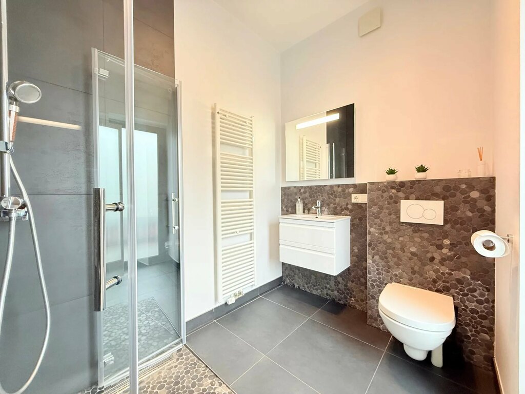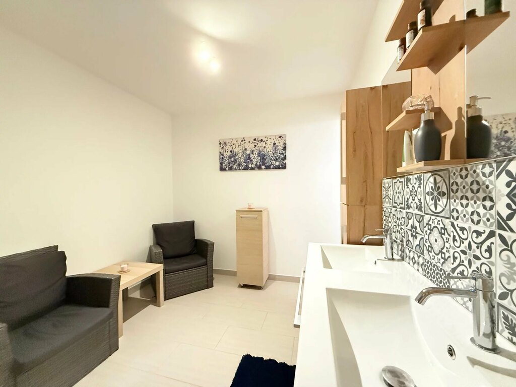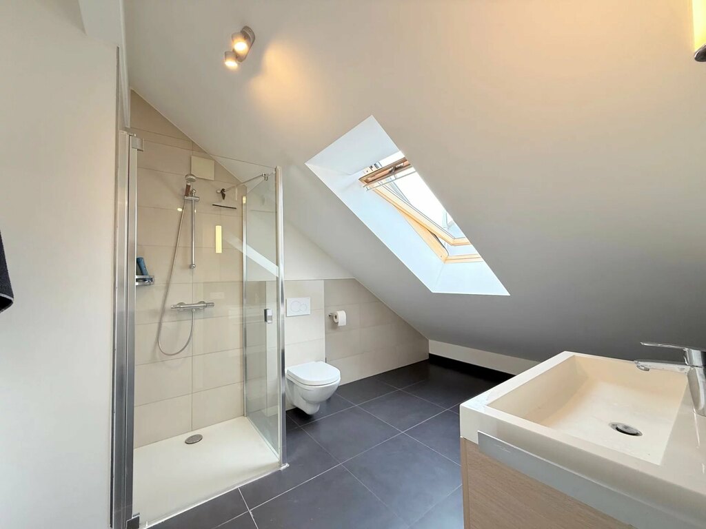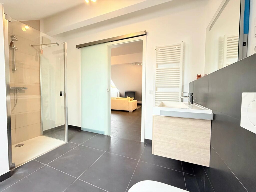 Tous les sanitaires sont équipés de robinetterie AXOR et de porcelaine Villeroy & Boch, témoignant du soin apporté à la qualité des finitions.