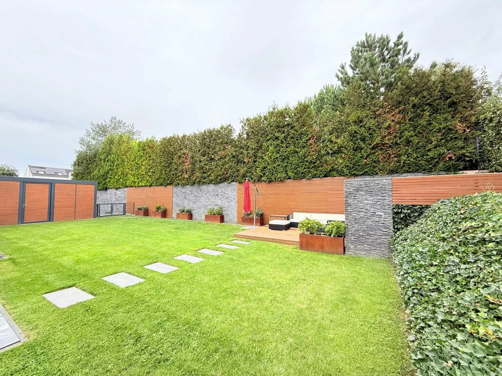 En regardant par la grande baie vitrée du séjour, vous découvrirez un vaste espace extérieur soigneusement aménagé : la terrasse et le jardin, le tout niché dans un écrin de nature paisible et discret. Une seconde terrasse, à gauche, profitant du soleil de l'après-midi, prolonge l'atmosphère de tranquillité et d'intimité. Vous y trouverez de superbes espaces barbecue et détente, avec stores électriques et parasol pour vous protéger du soleil et de la pluie.