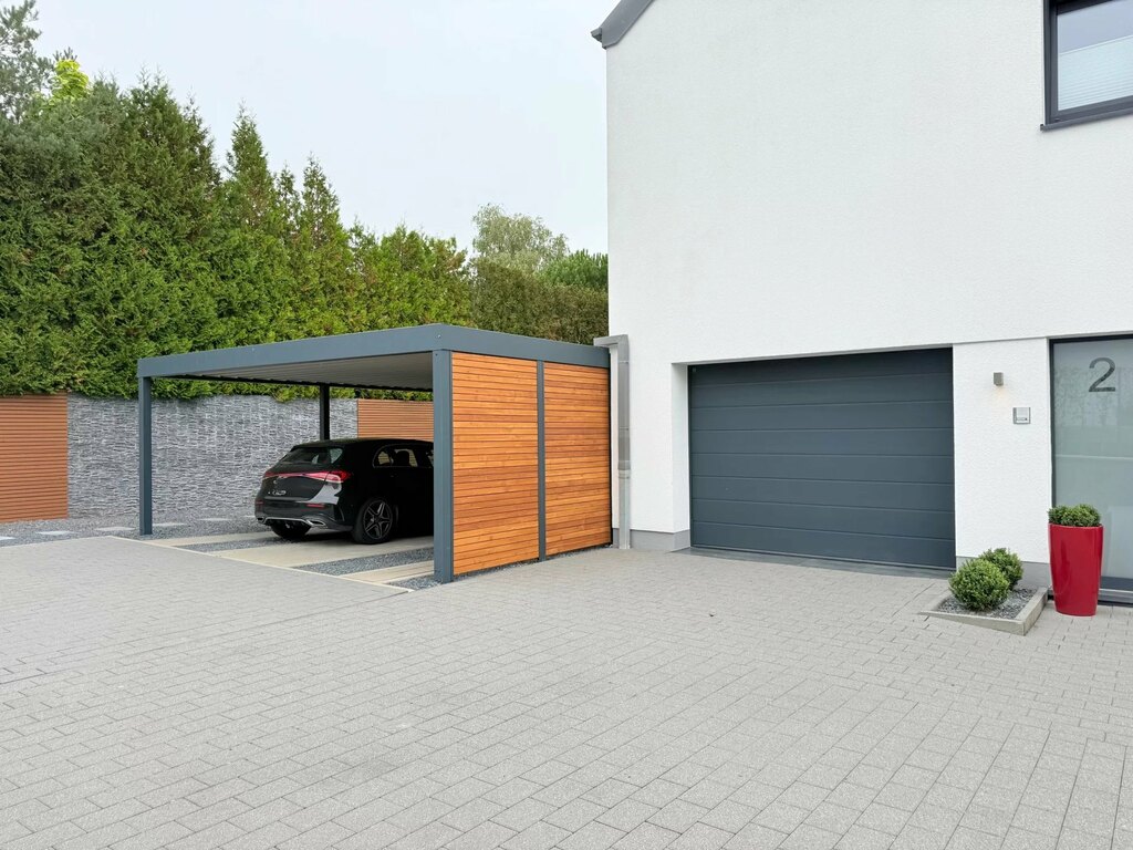 Pour votre confort quotidien, un abri voiture de 6 x 9 m et situé juste à côté de la maison, vous permettant de rentrer vos courses sans vous mouiller en cas d'intempéries.