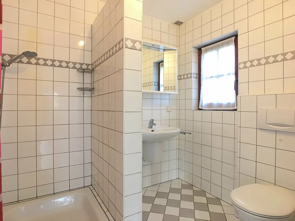 • Salle de douche avec douche, lavabo et WC